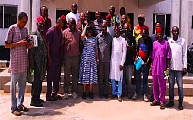 Umunneochi Mayor, Sunny Afurobi with Honourable Commissioner for Poverty Alleviation and Social Protection, Mrs Ngozi Blessing Felix, and members of her delegation in a group photograph